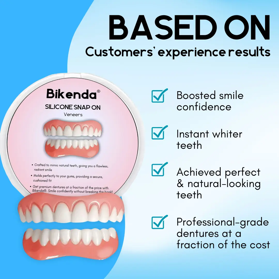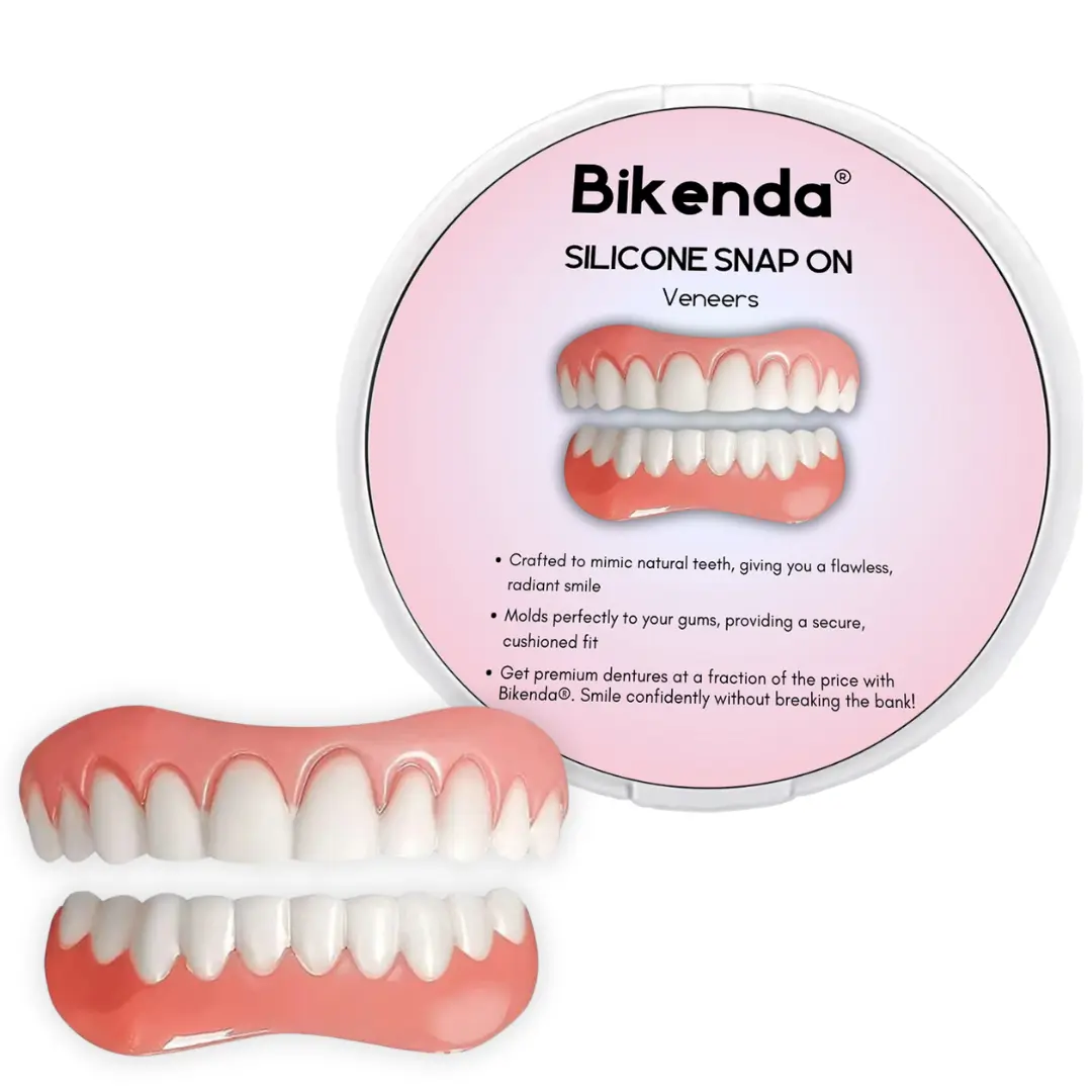 Welcome to Bikenda® Silicone Snap On Veneers, where cutting-edge dental innovation meets affordability. Our product offers you professional-grade dentures that look and feel just like the real thing, but without the hefty price tag. Transform your smile and regain your confidence with our easy-to-use, high-quality denture set.