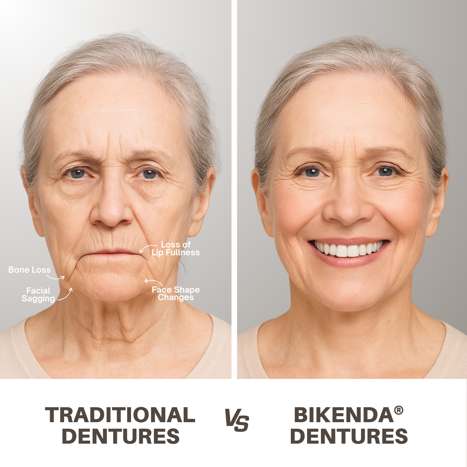 Unlike traditional dentures that slip, rub, and cost a fortune, Bikenda® uses advanced technology to mold perfectly to your gums and teeth in just minutes. The result? A custom, comfortable fit that feels natural and stays in place all day long.